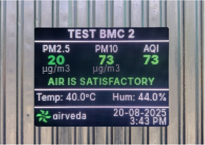 A 3ft x 4ft LED board must exhibit real-time PM2.5 and PM10 levels visibly at every site entrance.